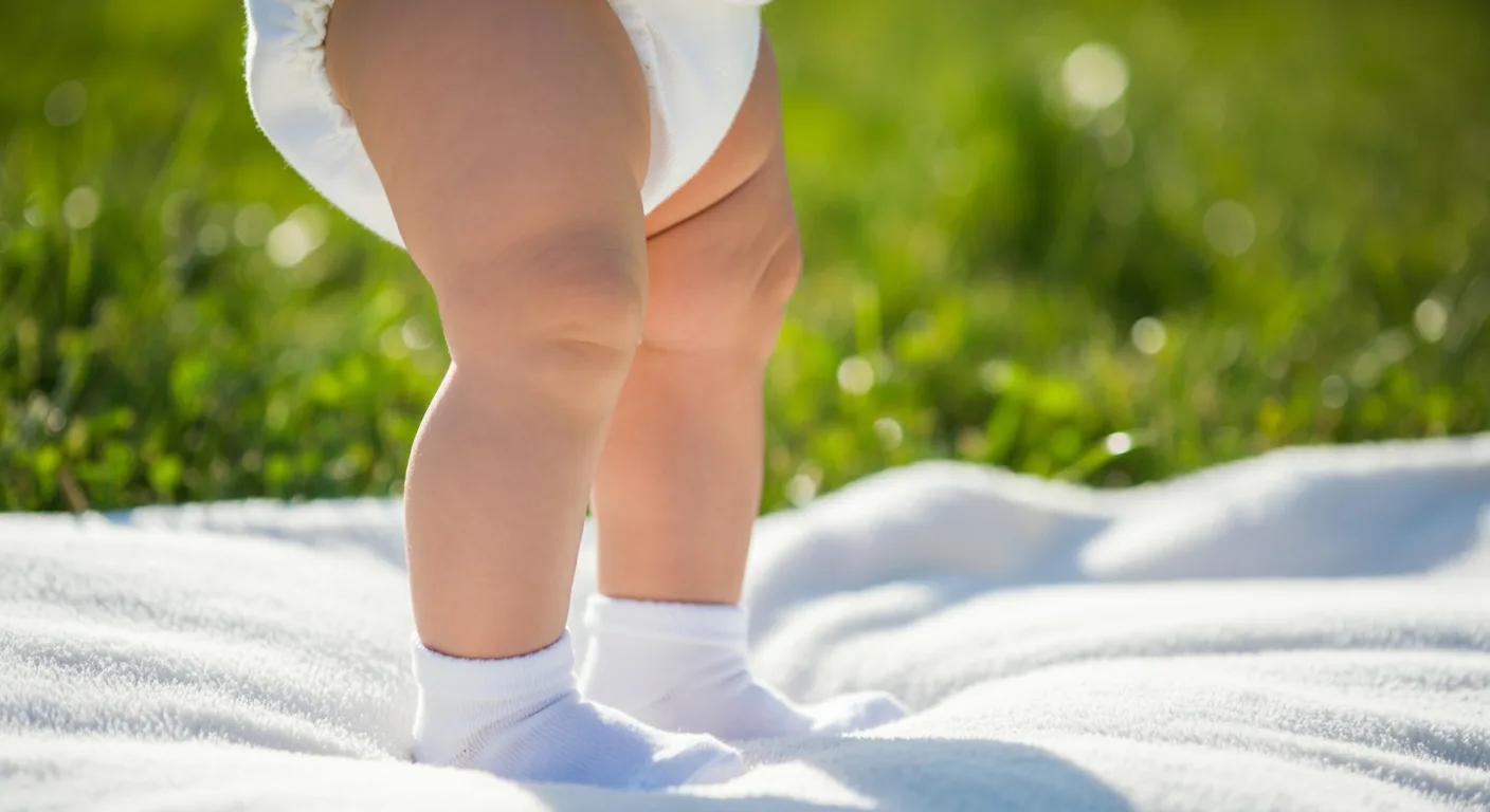 Home » Home » Baby’s,Legs,Dressed,In,White,Socks,Are,Standing,On,The